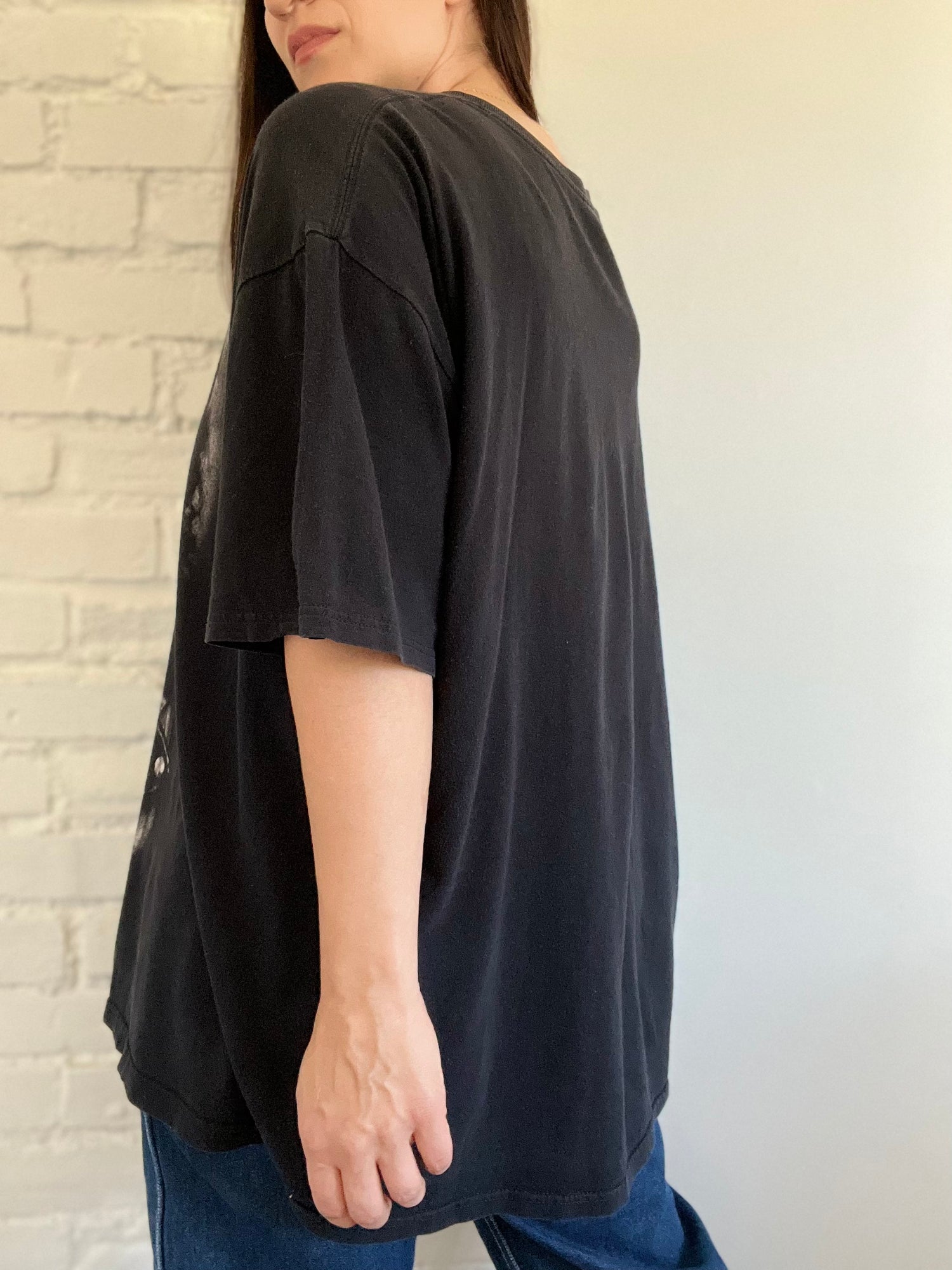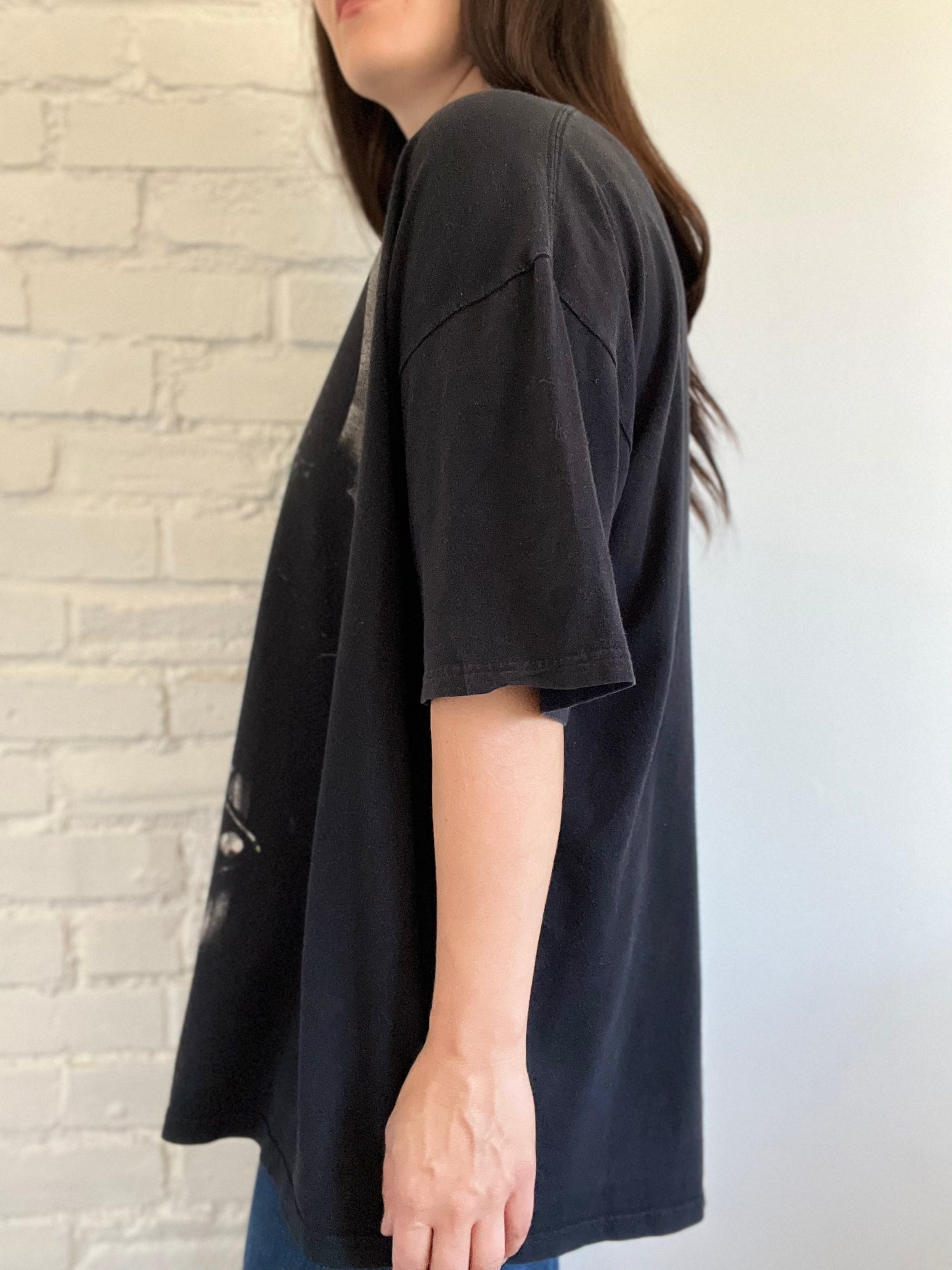 A 2004 Slash t-shirt with iconic face covering entire facing of the shirt. Black and white, and in mint condition without marks or flaws. Trademarked in bottom corner by Dik Hayd International LLC.