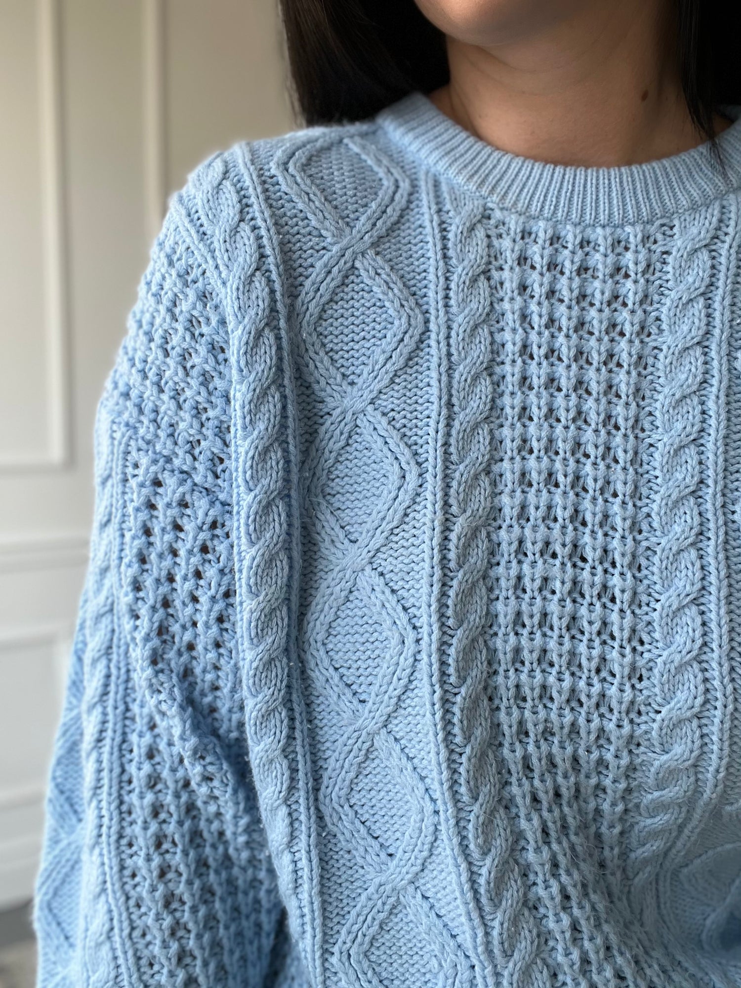 A perfect pullover for those cooler spring days. The chunky-sweater that isn't too heavy, perfect for transition weather.