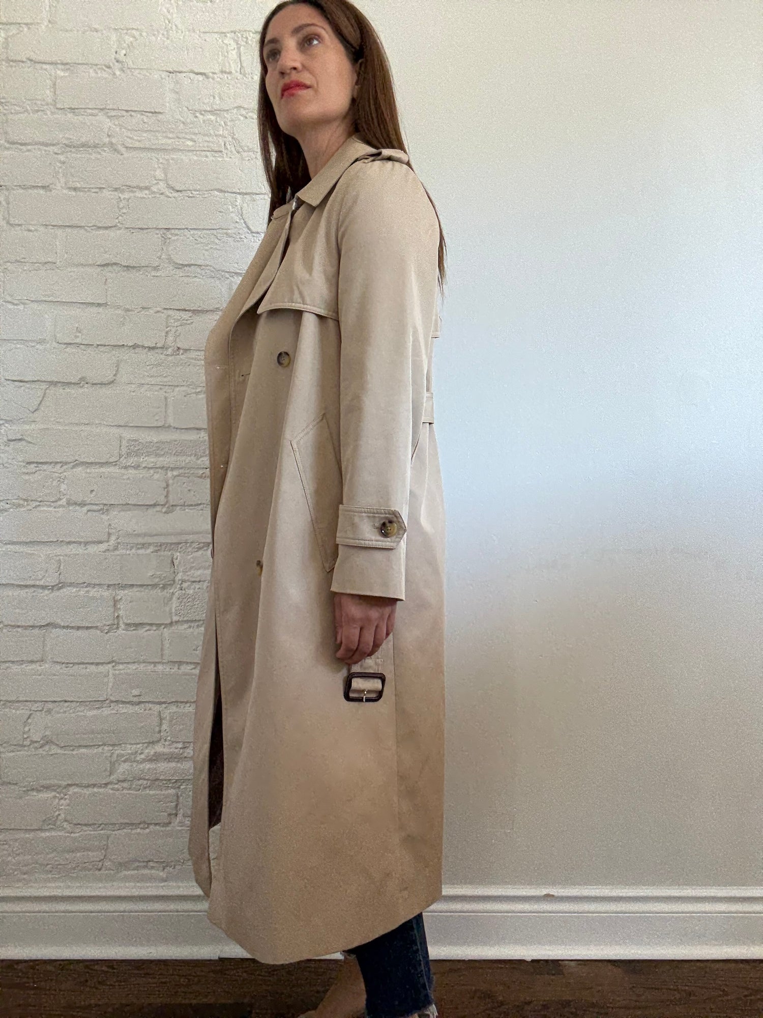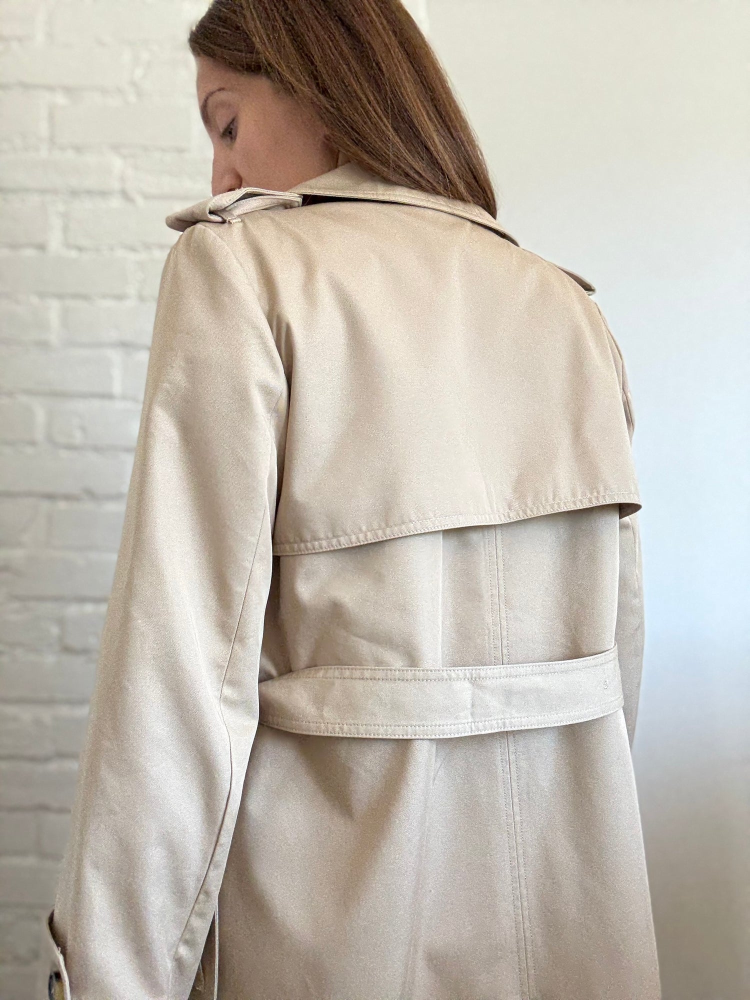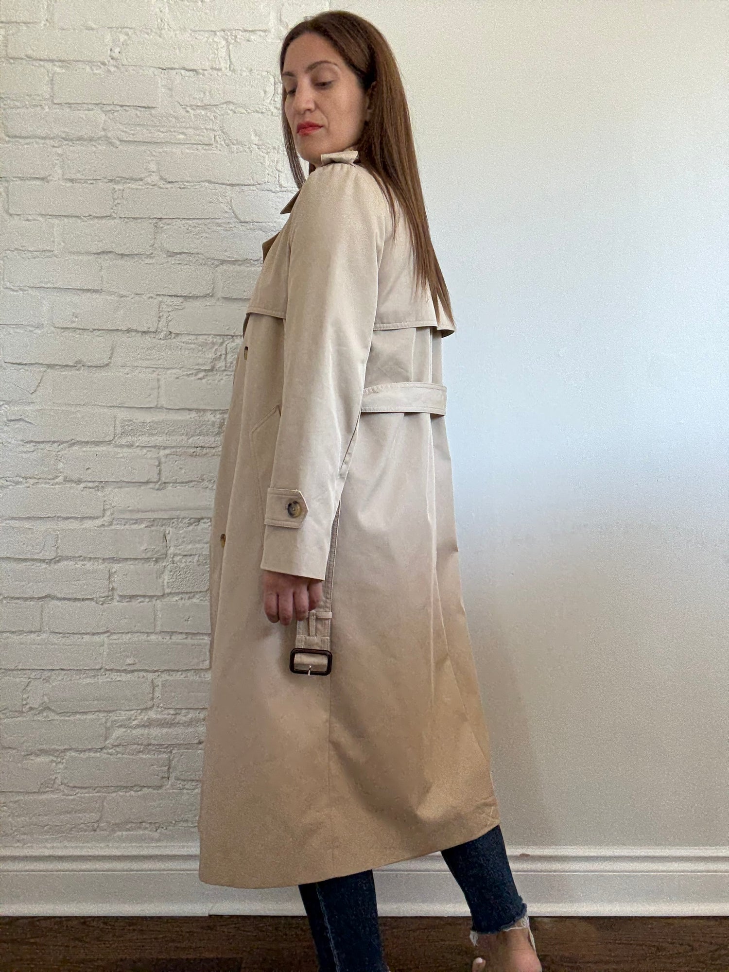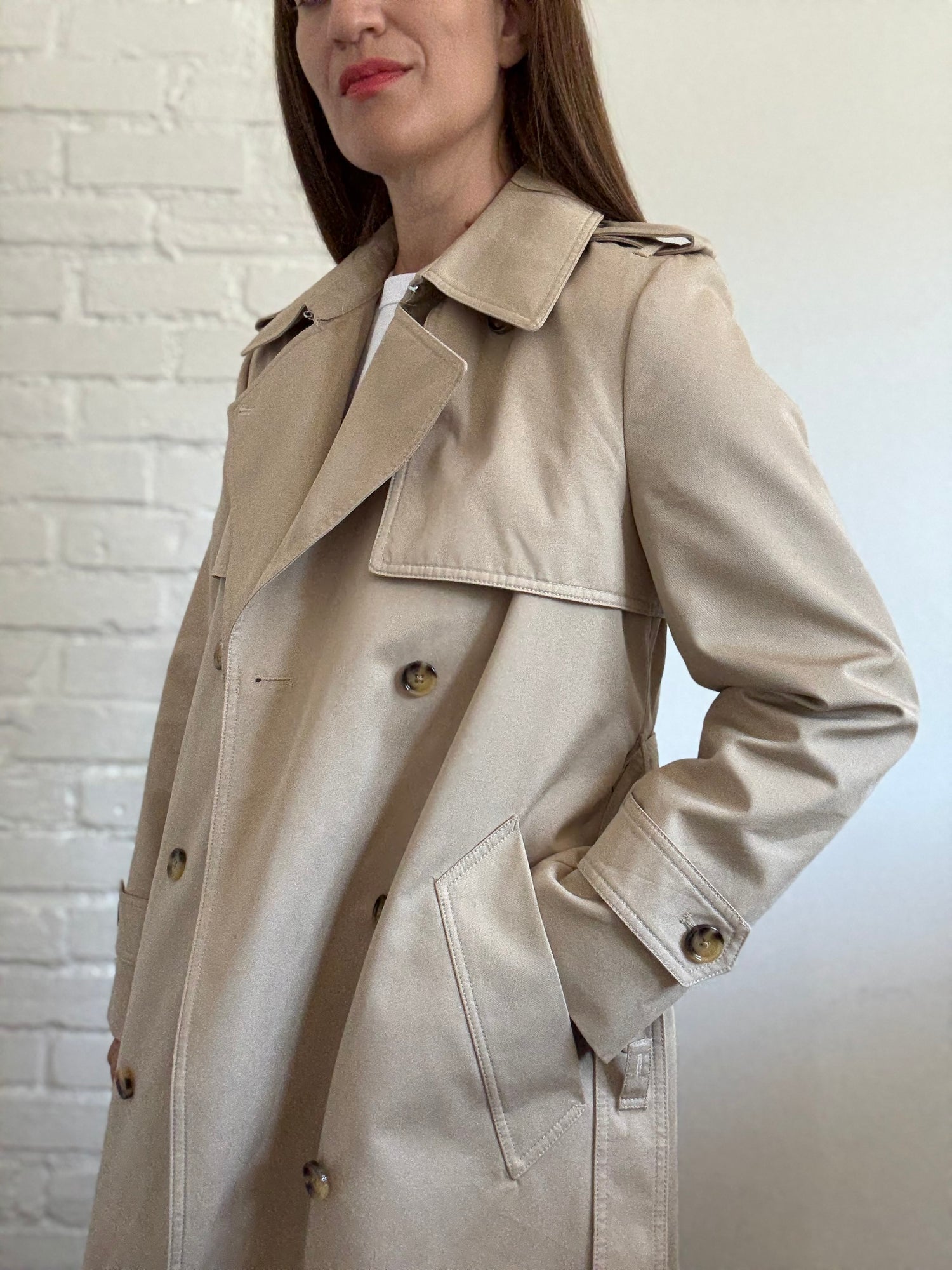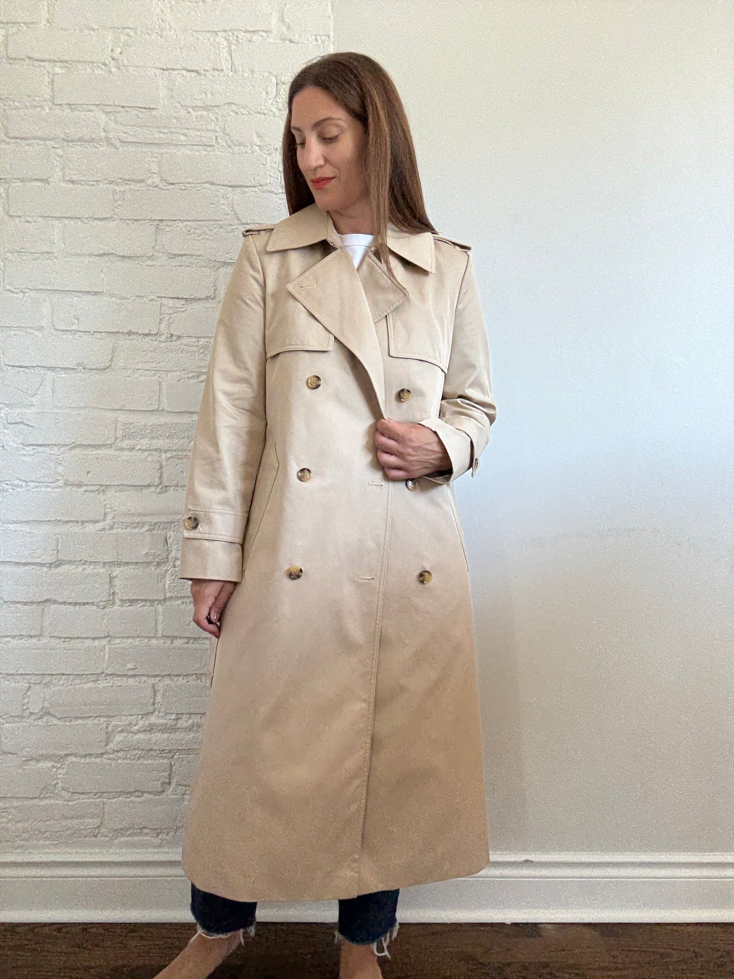 A stunning, brand new without tags, long trench coat from Mango. Water-repellant, the durable finish of this garment protects against light rain, repelling contact with water and raindrops. 100% cotton fabric with a straight, long design. Lapel with notch. Decorative buttons on the shoulders, and belt buckle fastening. Front closure with crossed buttons. Inner lining. Retails for $229 USD or $350 CDN.
