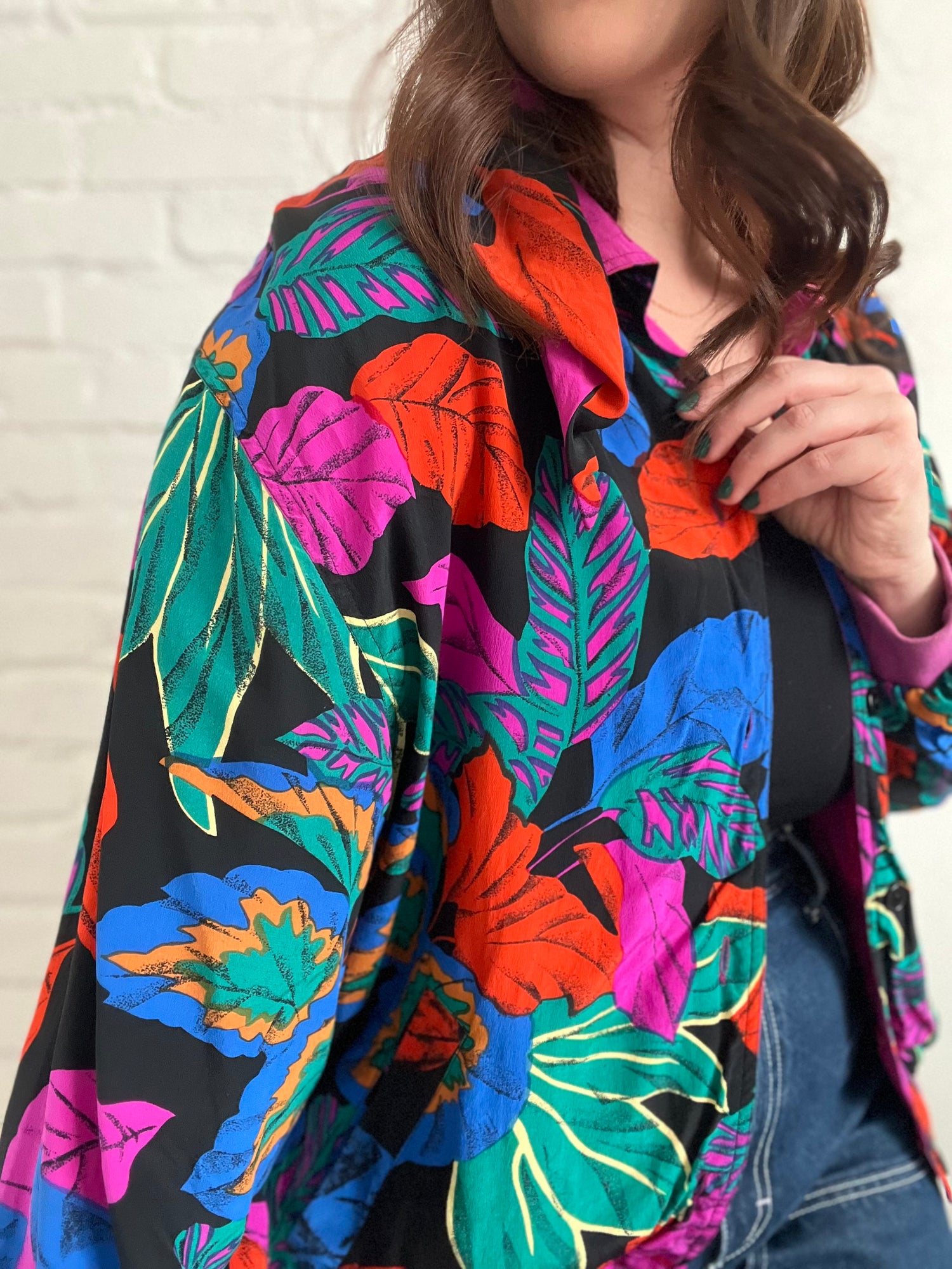 Double-Sided Silk Leaves Bomber - Size L/XL