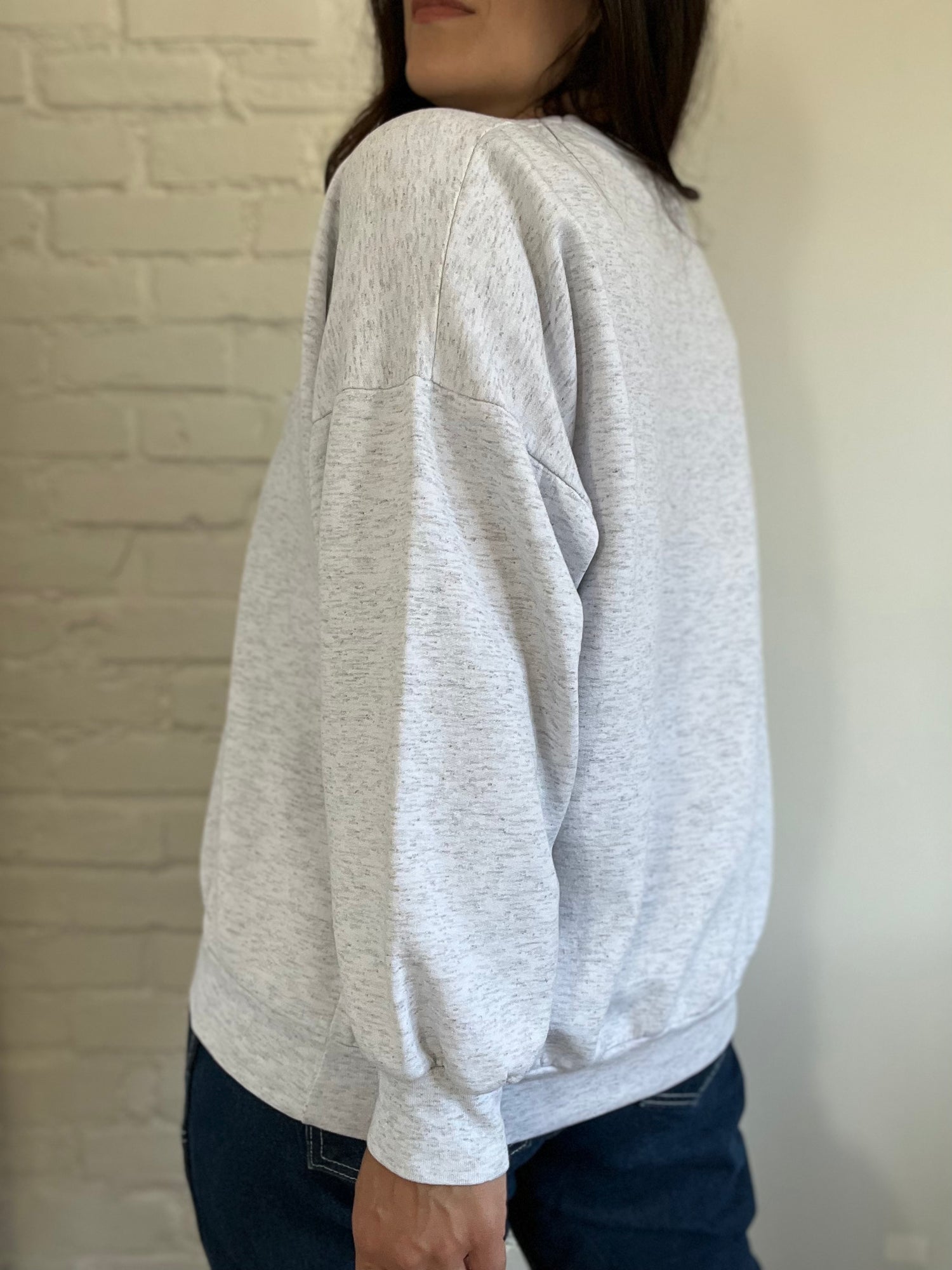 The comfy-est sweater you will own. A plain, heather grey crewneck sweater with a relaxed fit. Flawless inside and out, with a soft plushy interior to keep you cozy.