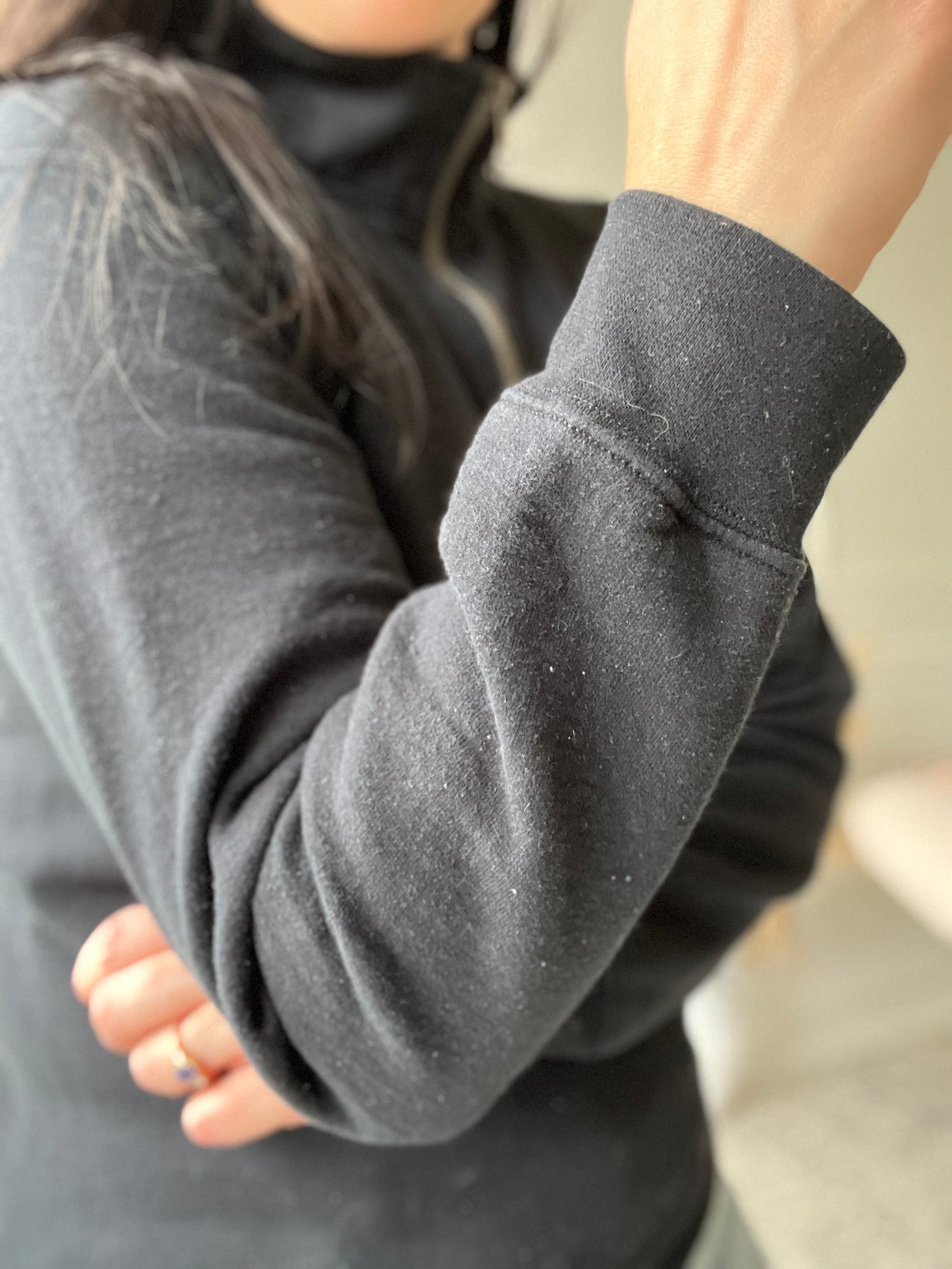 A Peace Collective piece that we know and love. The "Home is Toronto" Crescent 1/4th quarter zip pullover. Constructed from 60% Cotton, 40% Polyester Ringspun Fleece Fabric. 1/4 zip up with silver zipper pull, stand up collar, embroidered signature design. Tagged an extra-small, but fits like a small.