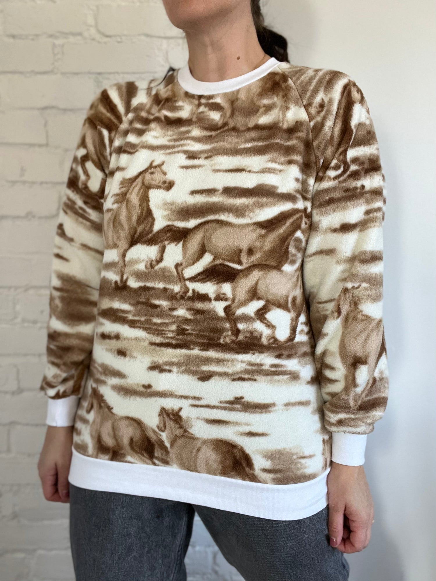 Horses Fleece Crewneck Sweater - Size S