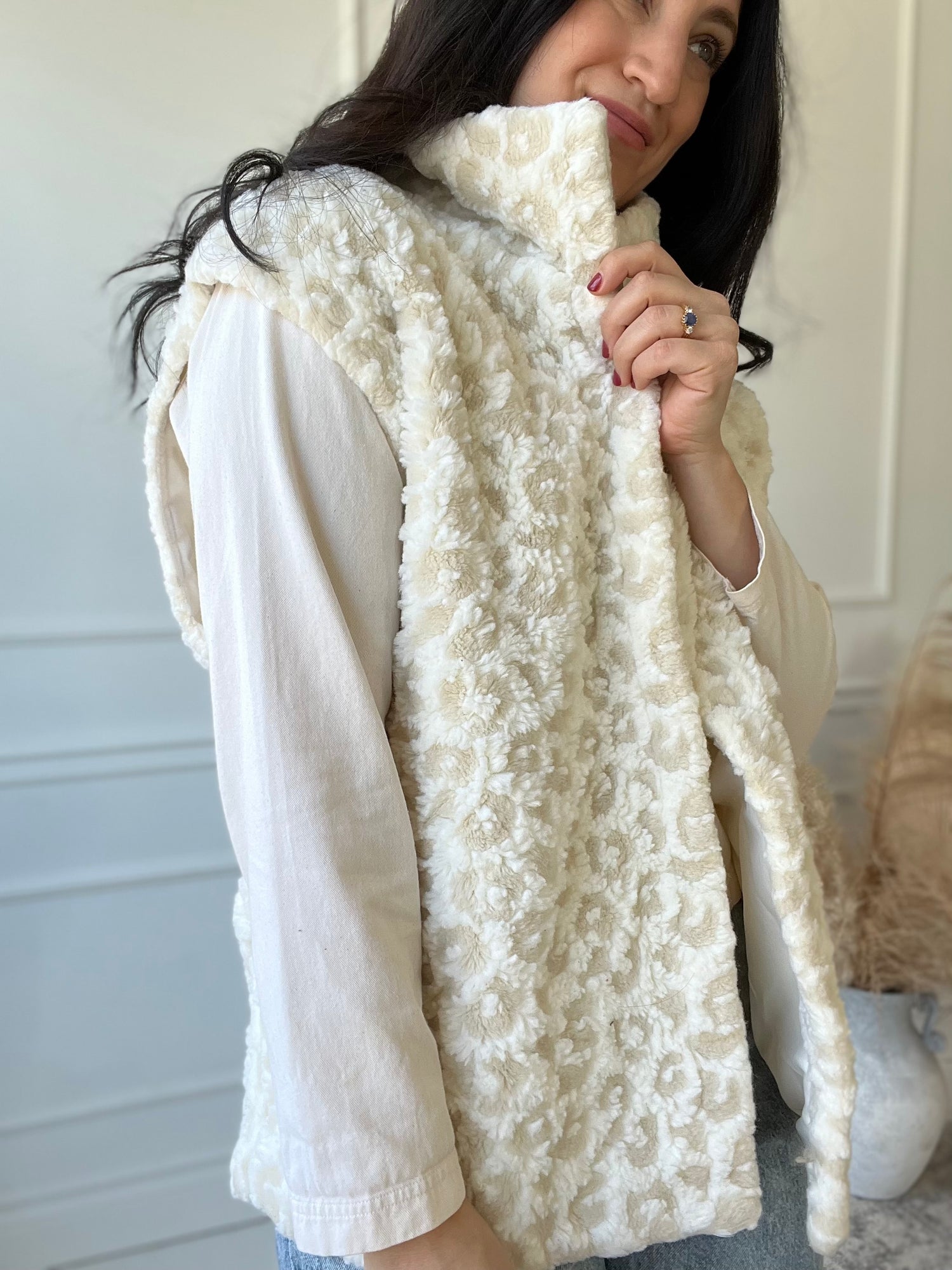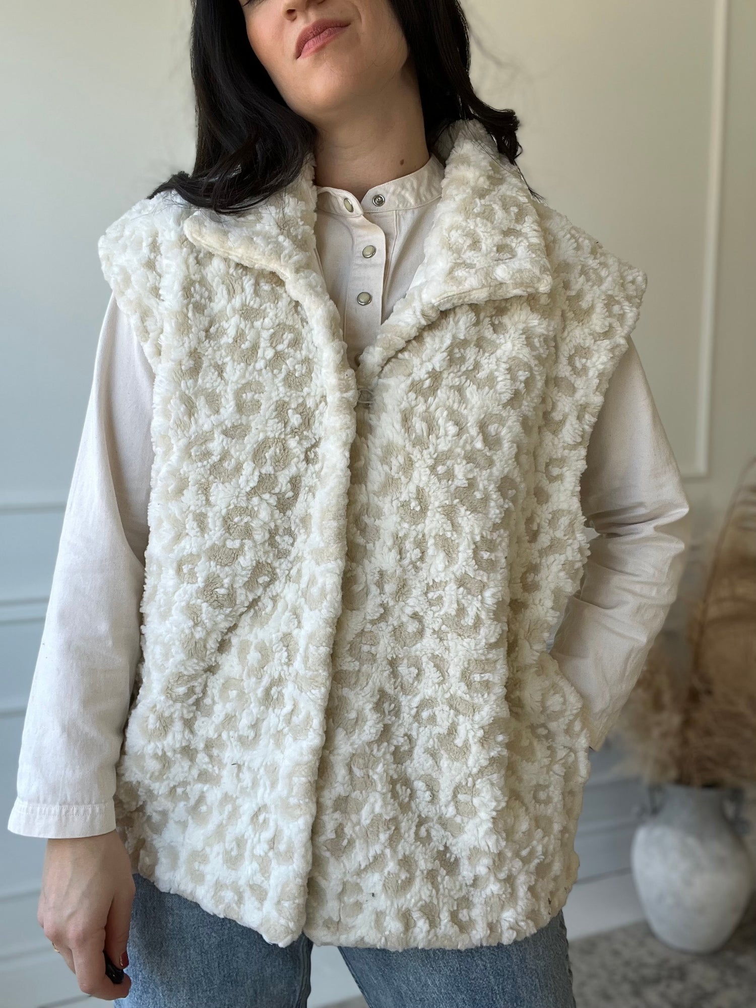 Oversized creamy leopard vest.