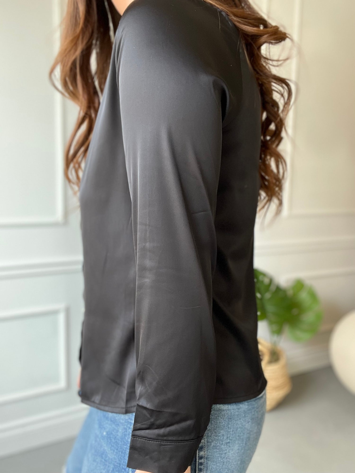 If a rockstar had a corporate job, this would be the shirt. A very unique half leopard half black button-up shirt. The fabric is a thin, polyester satin. Buttons are black and gold. Rawr.