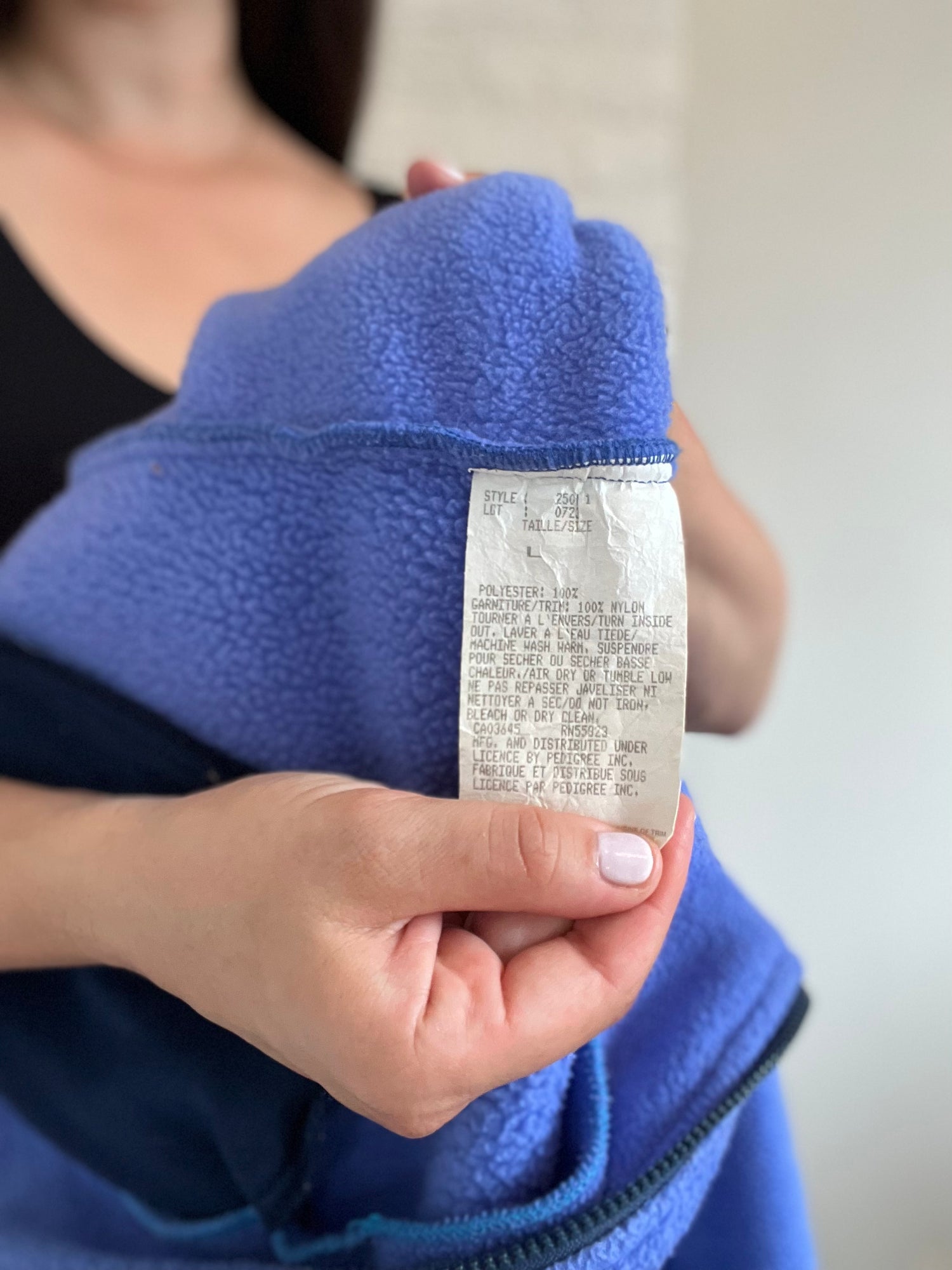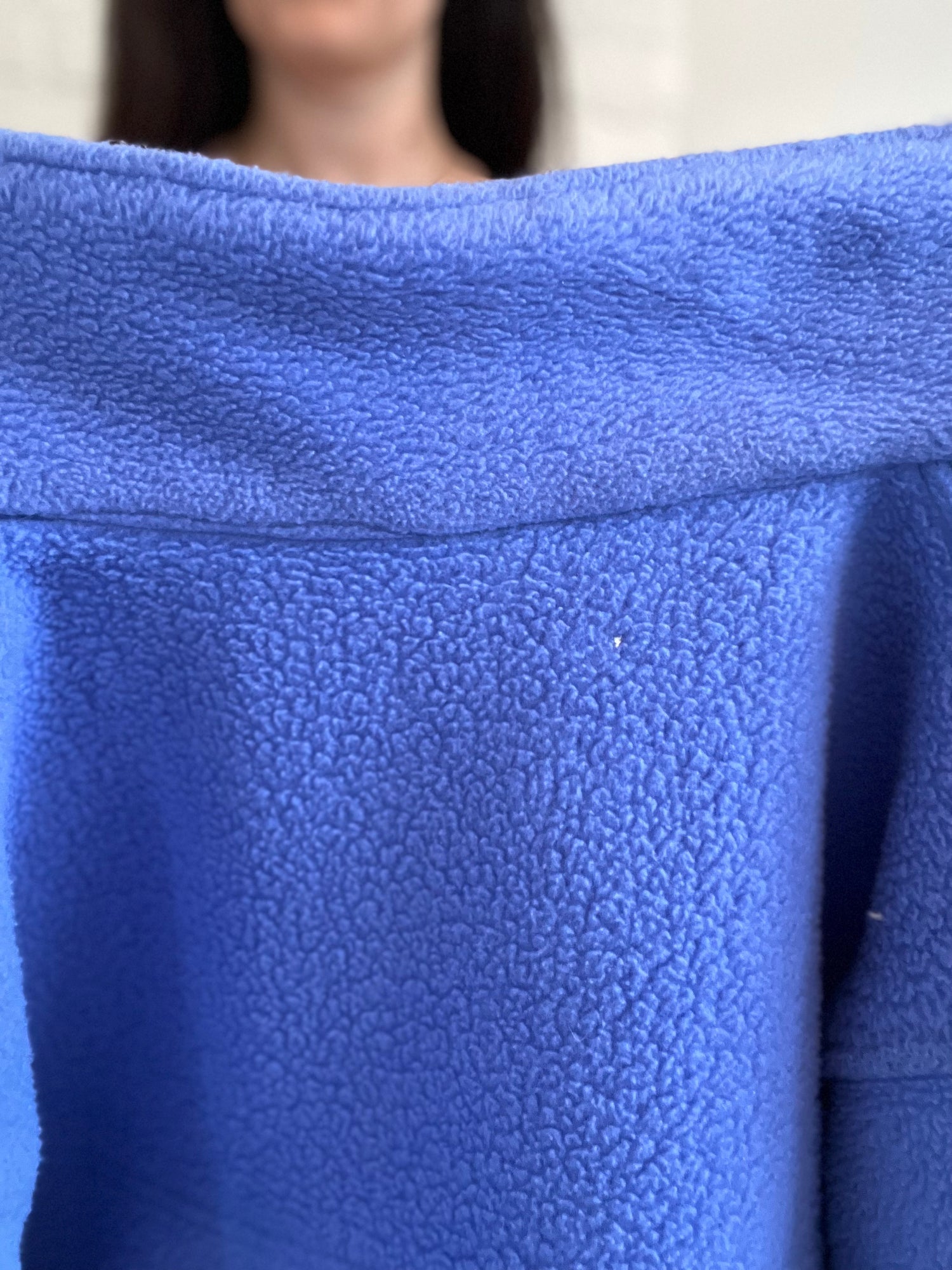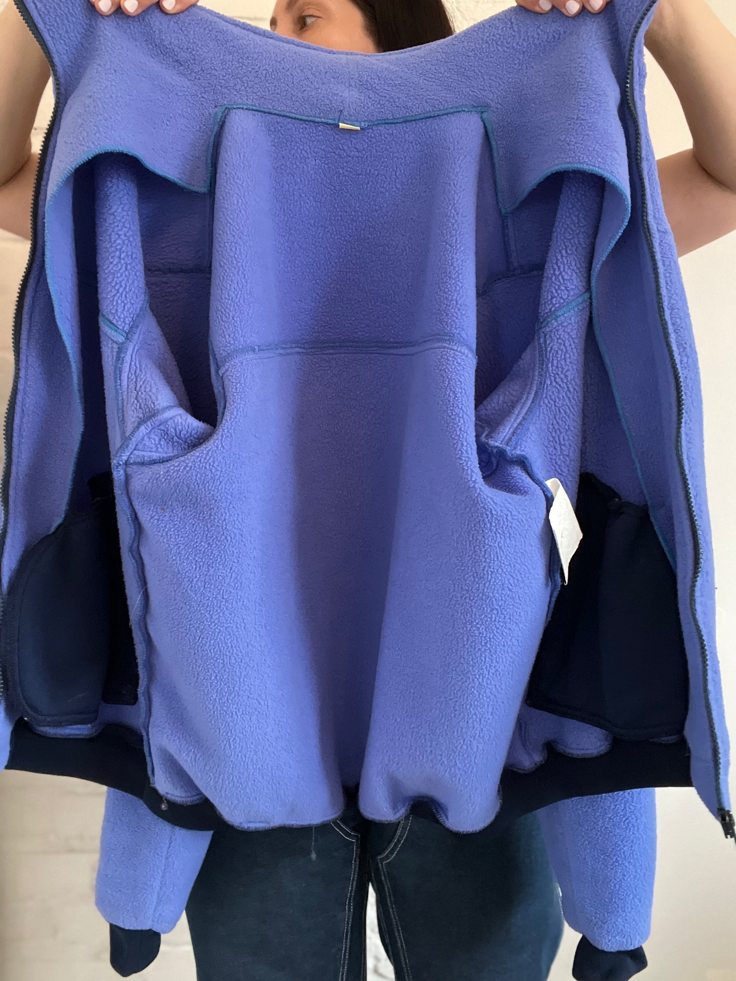 A unique, bright soft purple and navy blue Patagonia fleece zip up. From the 90s, this fleecer is in gorgeous condition with one minor pinhole in the top upper back as shown in photos. This sweater is still super soft and plushy.