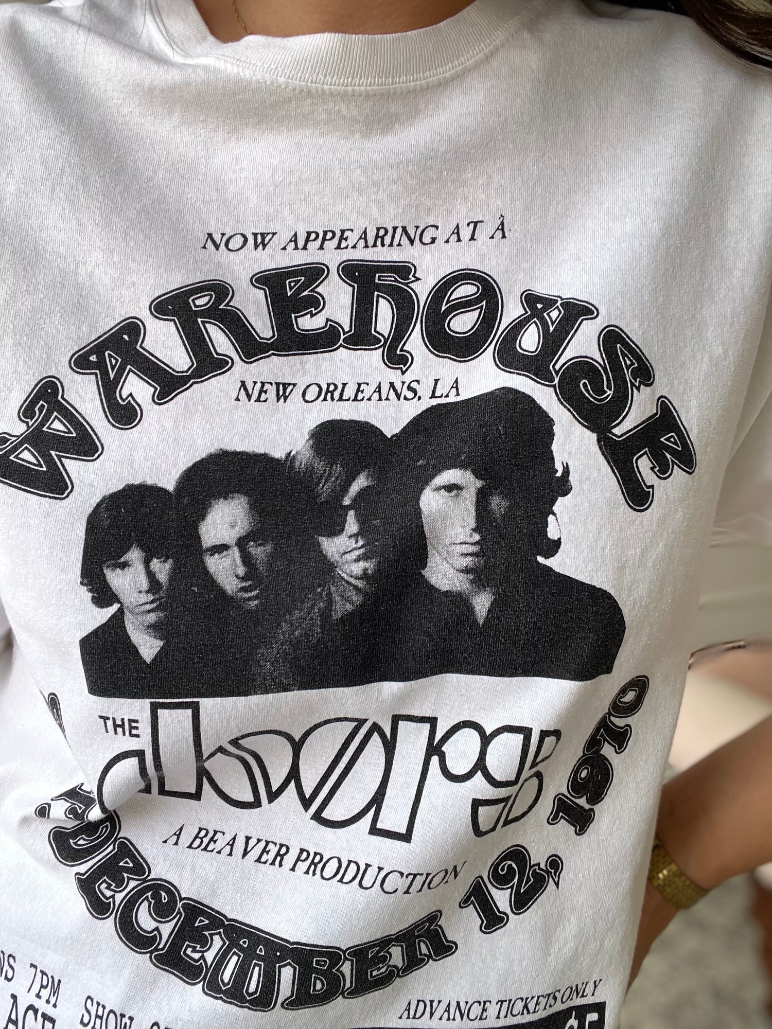 A little about the significance of this tee: This date is significant, and a historic moment. It would be Jim Morrisons last time performing with The Doors on December 12, 1970 in New Orleans at The Warehouse. It was at this show that keyboardist Ray Manzarek said, he felt Morrison ”leave the stage” even though Morrison was still standing in front of the microphone. When his spirit returned, Morrison smashed a hole through the stage with his microphone stand ending the concert early.