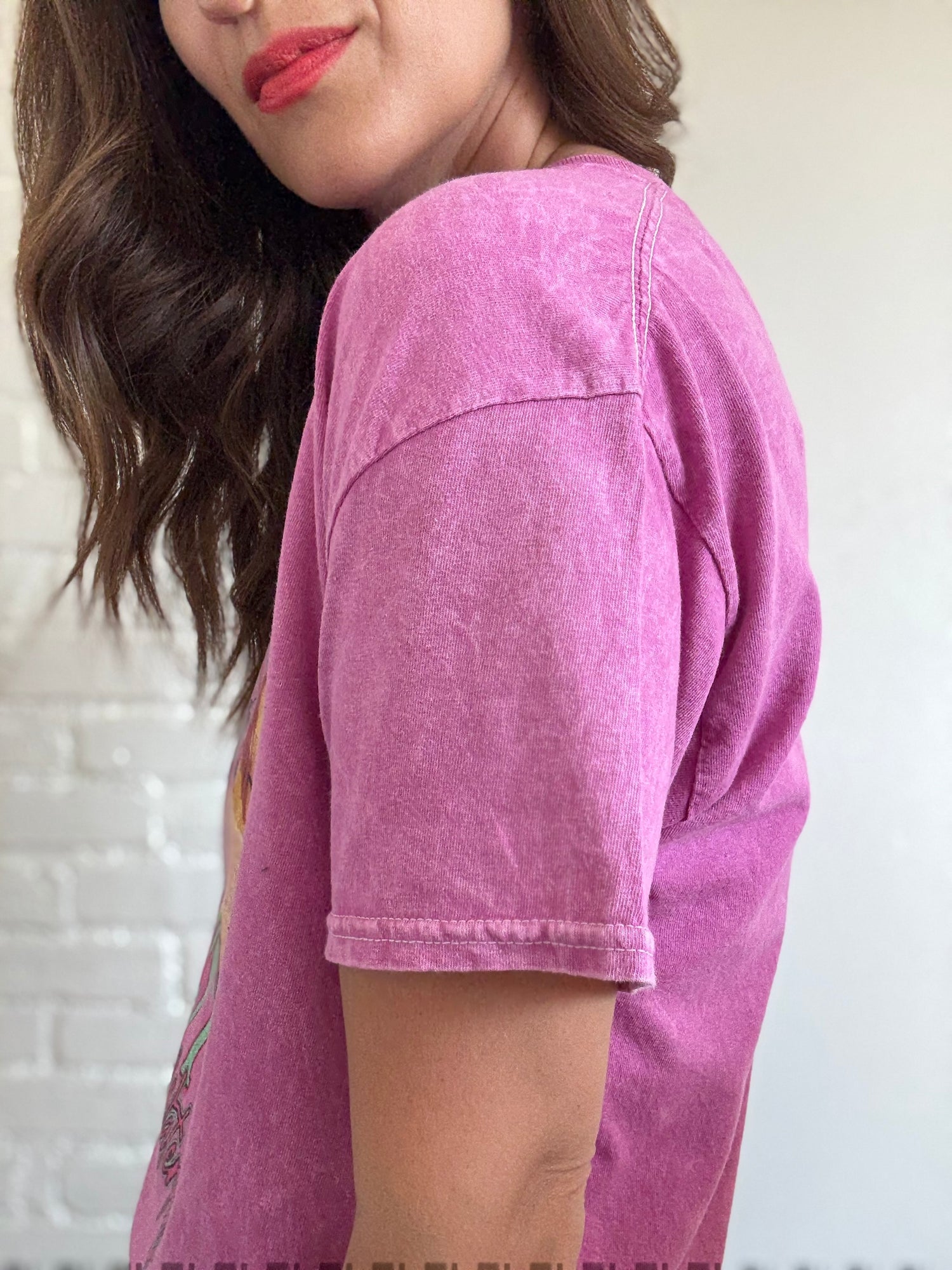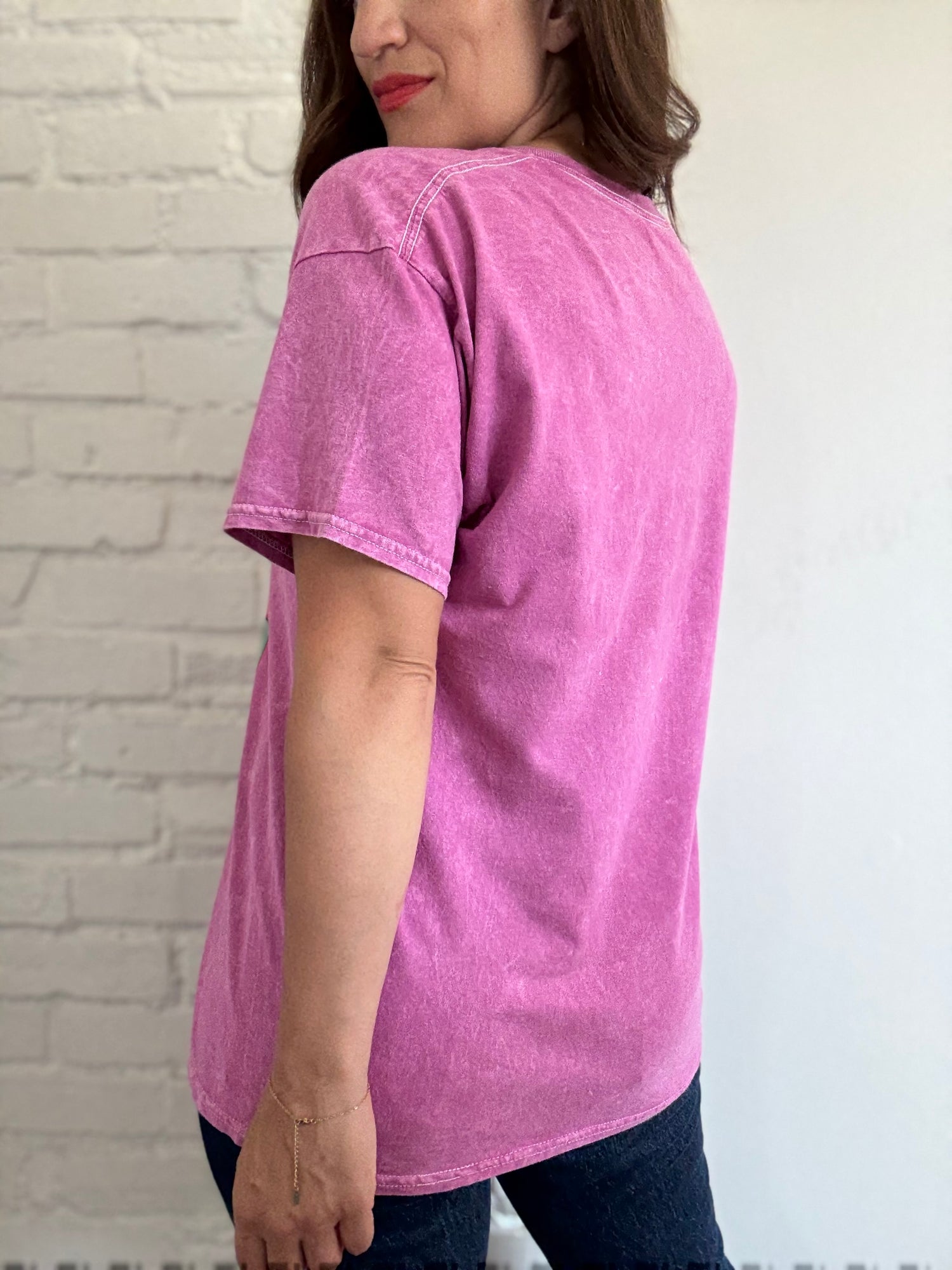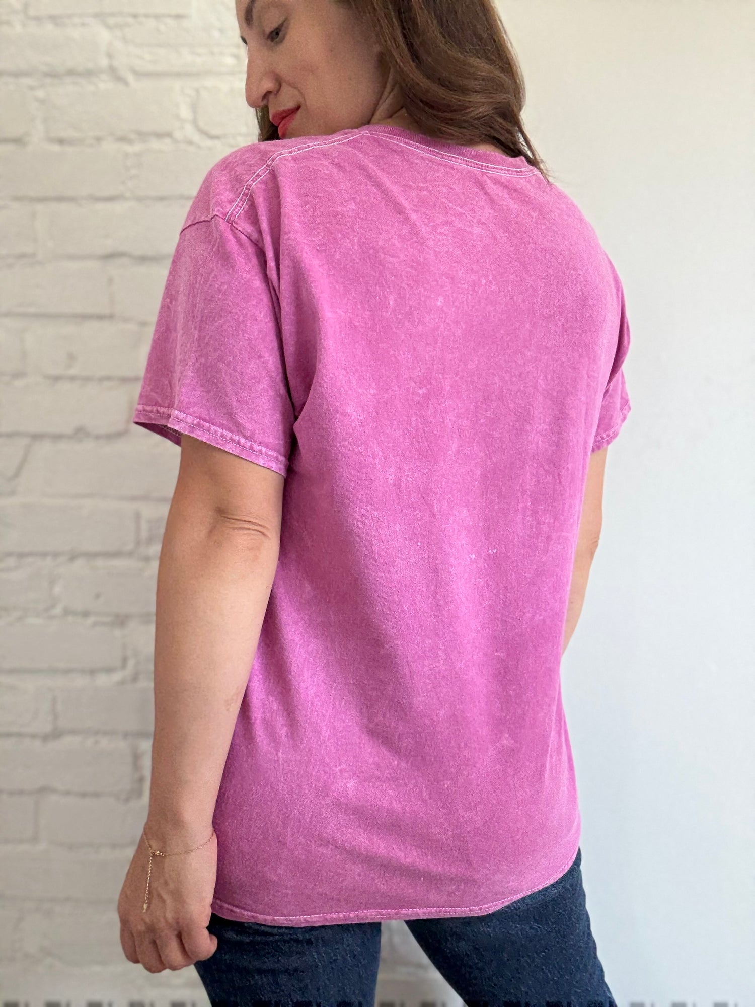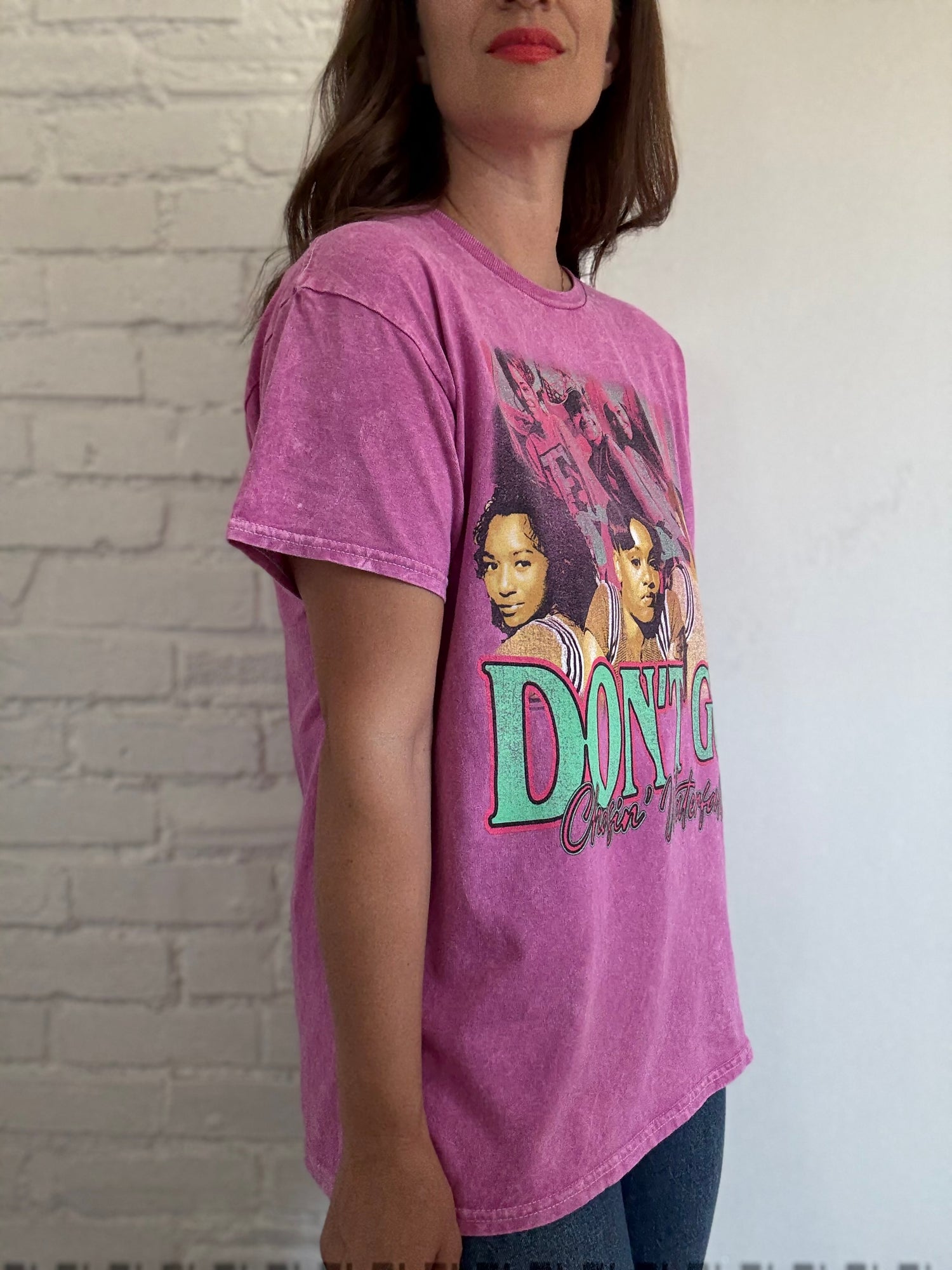 A pink tie-dye t-shirt with our favourite girl group - TLC. "Don't Go Chasing Waterfalls" printed on the front, under a collage of nostalgic photos. This shirt is a worn-in cotton, and in wonderful condition.
