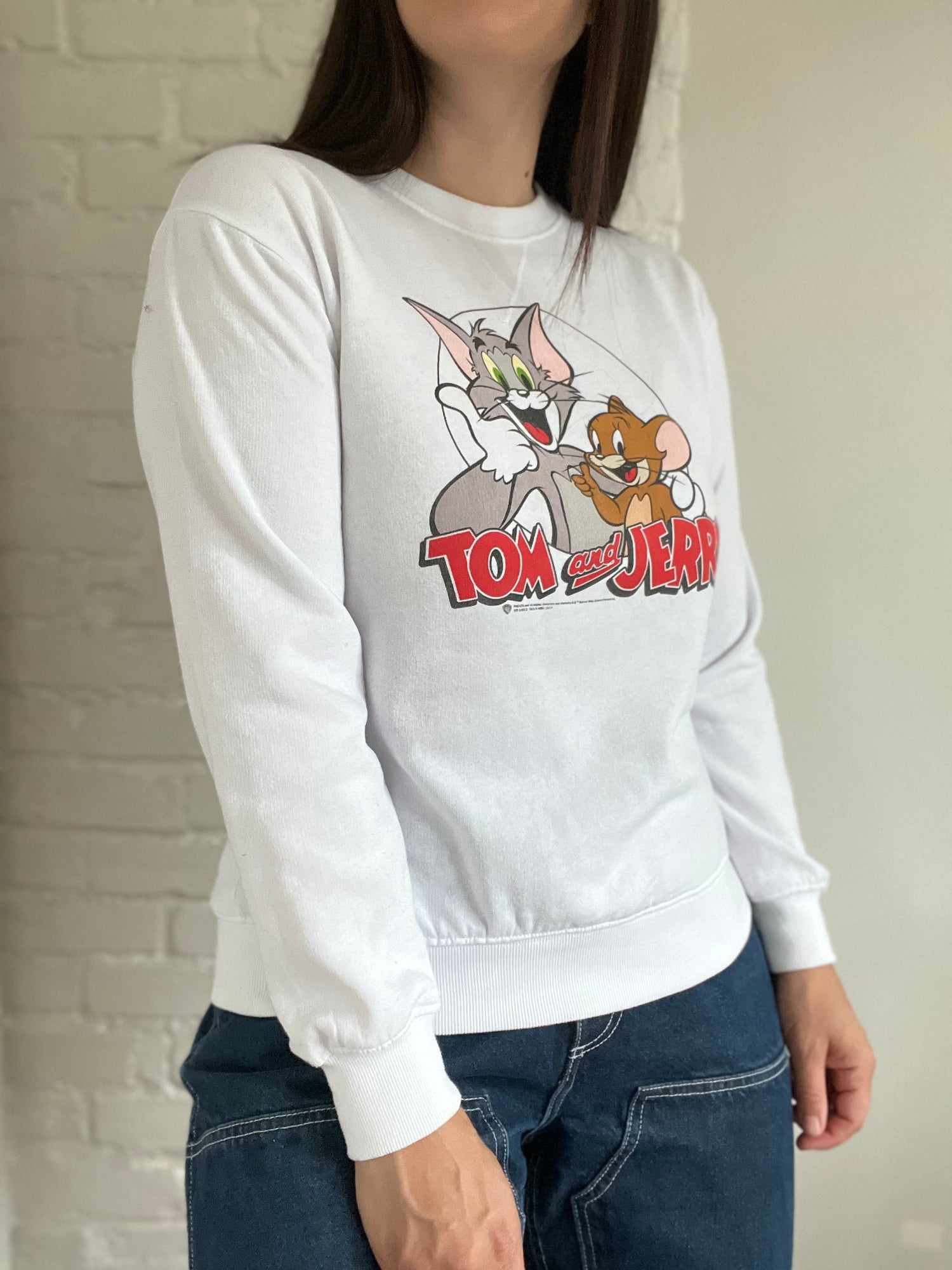 Two words: Hanna Barbera. Who's with me? This nostalgic sweater features the iconic duo Tom and Jerry ... the pals that won't stop chasing each-other. Hand stitched v-notch on neckline. Lightweight, playful, and a pure ode to nostalgia. Authentic vintge, with written Warner Bros. letter below front graphic. No tag, fits like a M.
