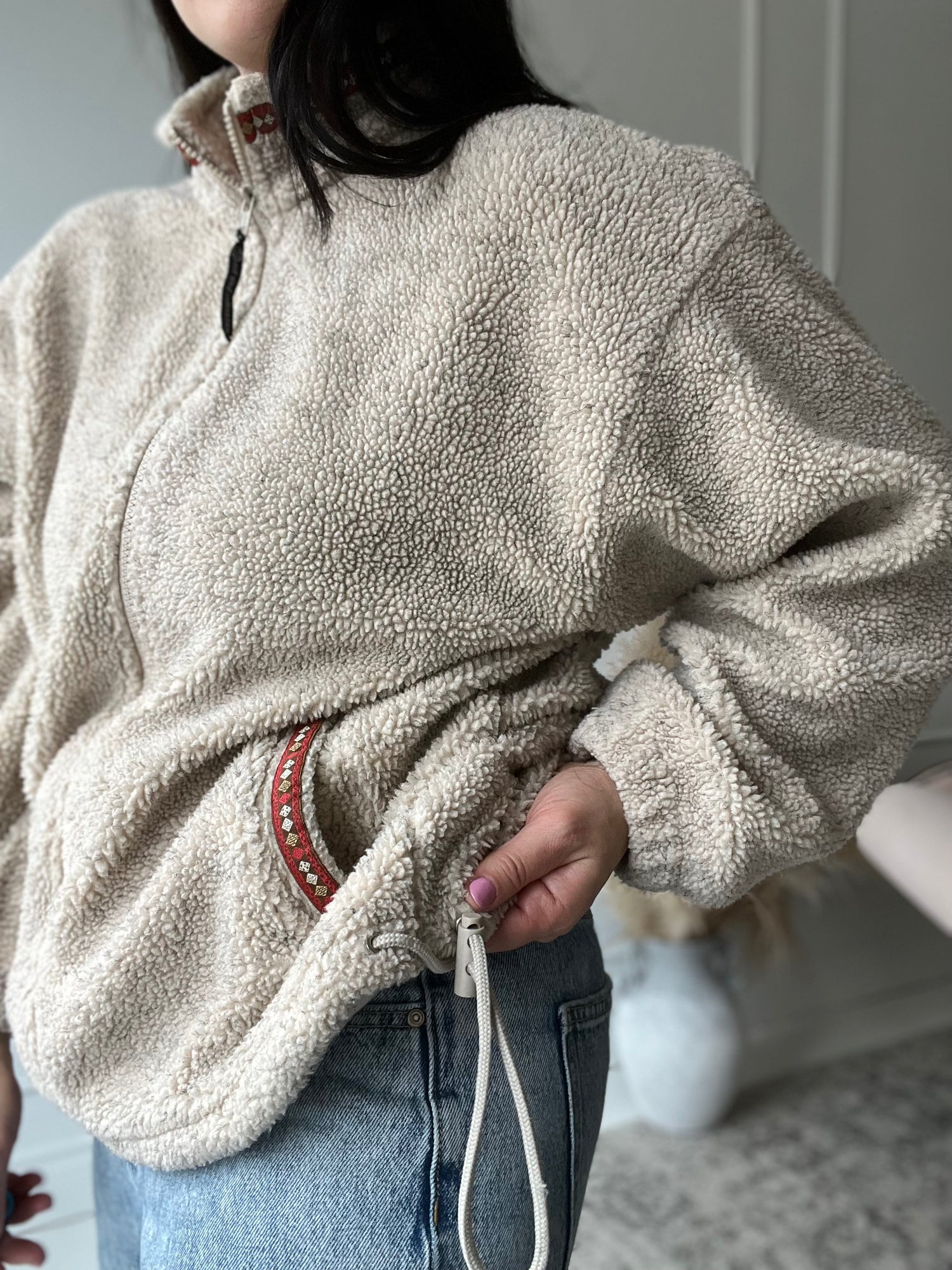 Vintage Beige Sherpa Fleece Jacket - Size XL