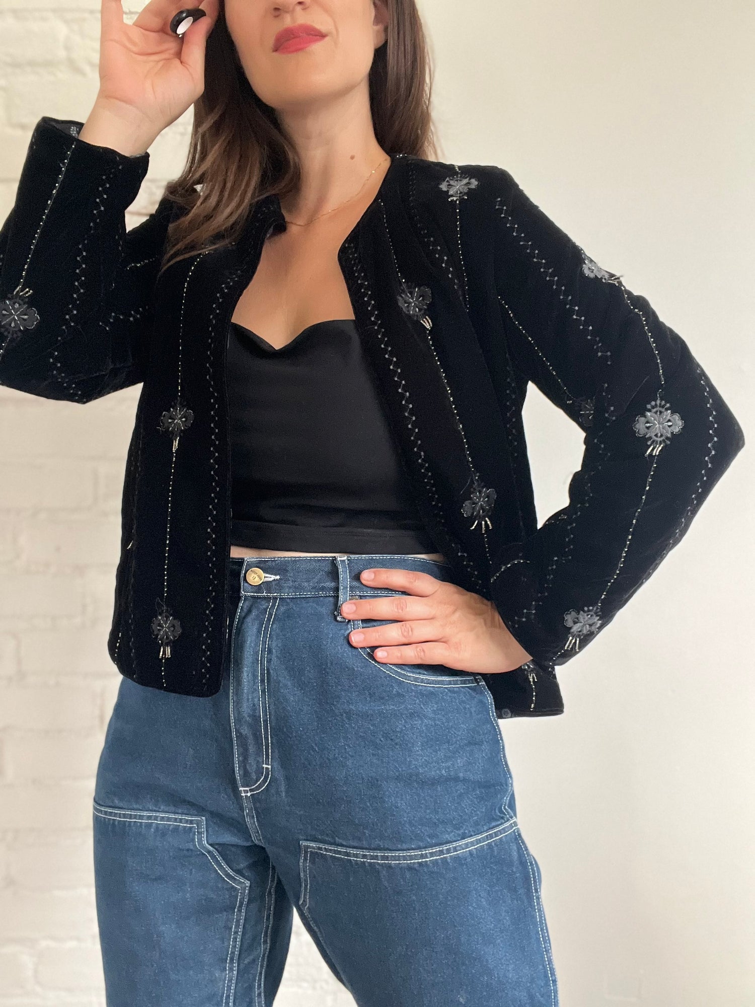 Zara Embroidered Velvet Jacket - S (oversized)